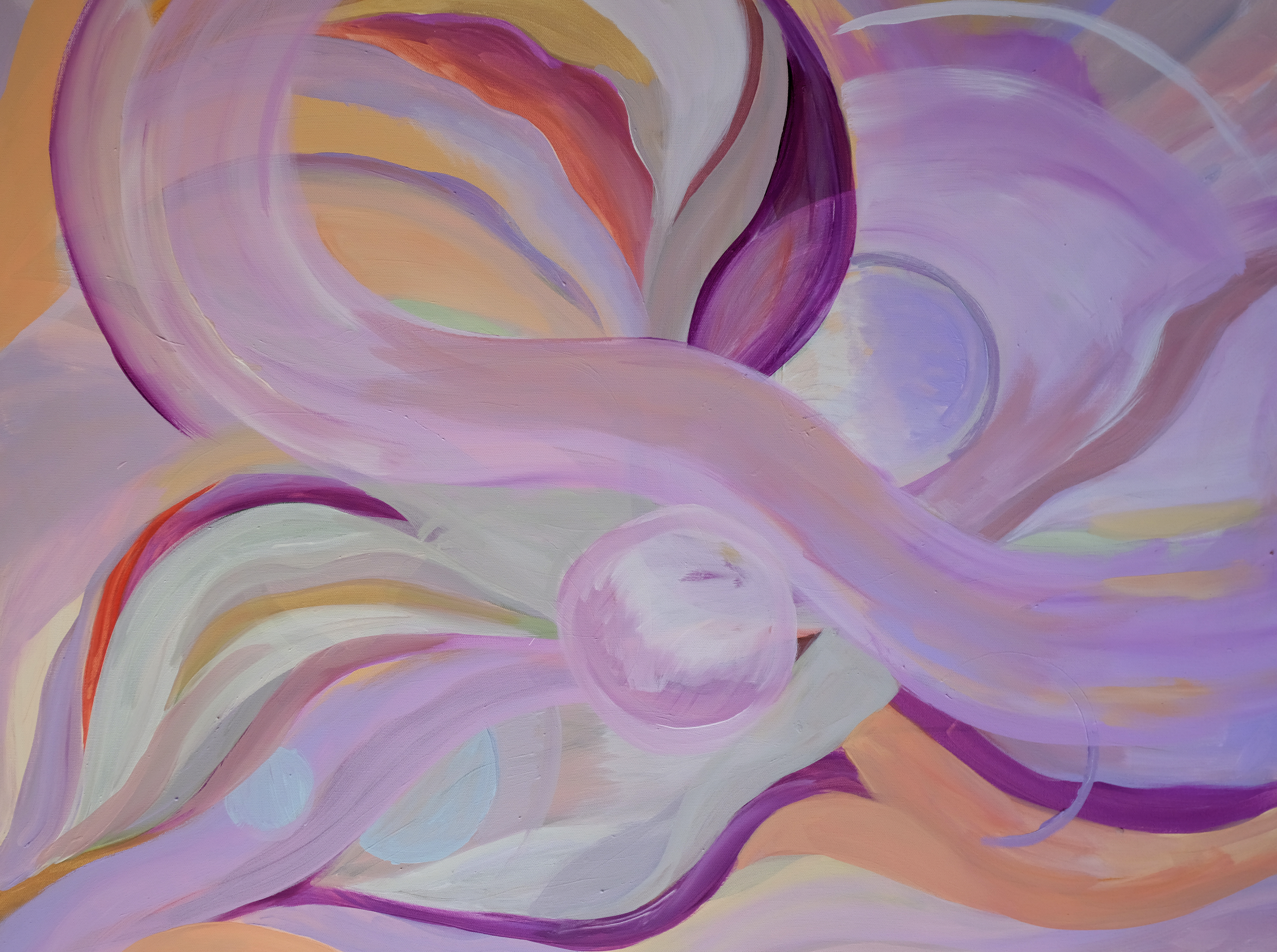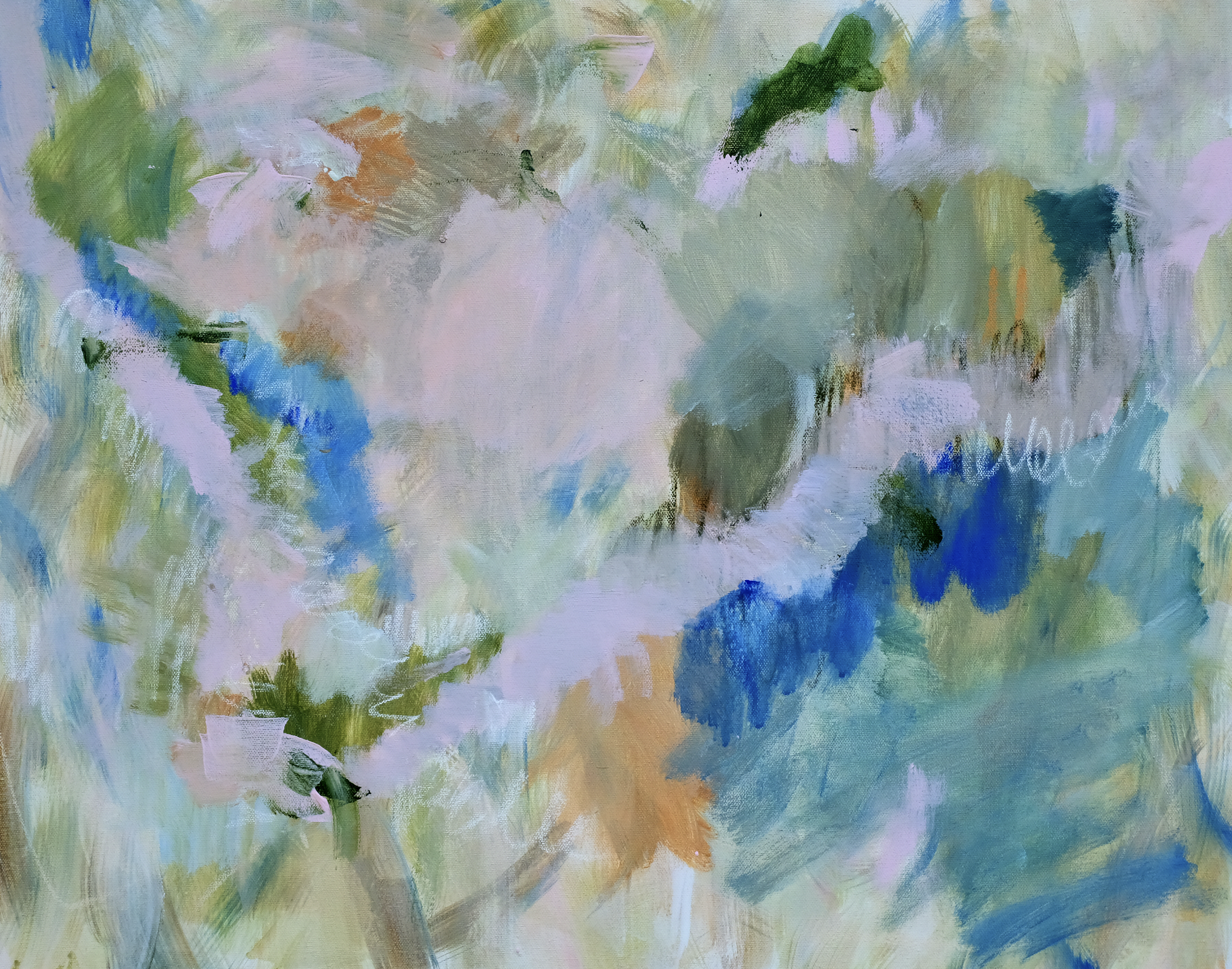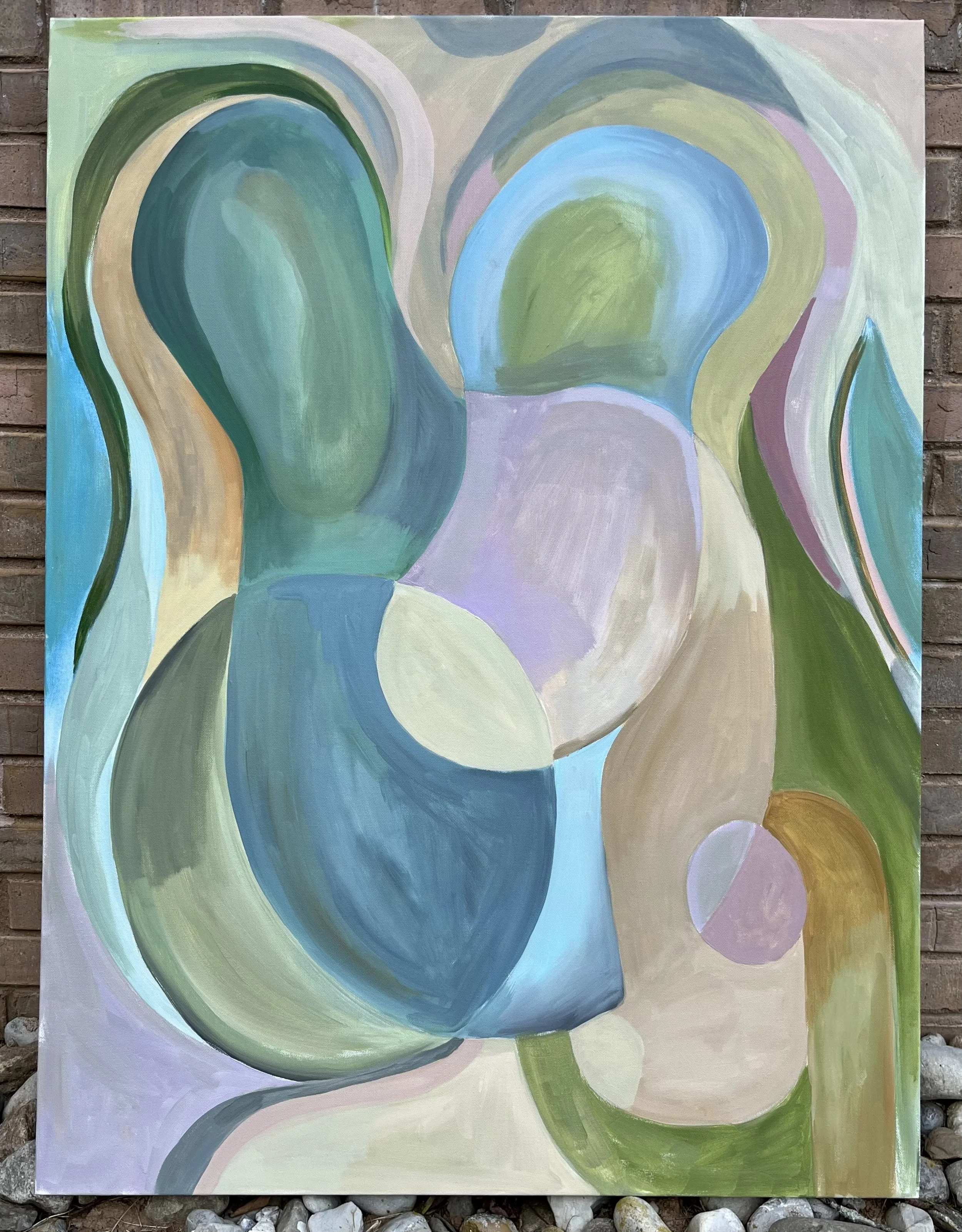 I work primarily with acrylic on canvas or linen depicting loose shapes, organic rounded forms, and an interplay of color to convey various thematic concepts reflecting my inner process of transformation. I have spent the past several years cutting away the blocks that have kept me from the expression of my truth and authenticity. The exploration of spiritual growth, psychological concepts, and inner emotional landscapes are vital to my process.
