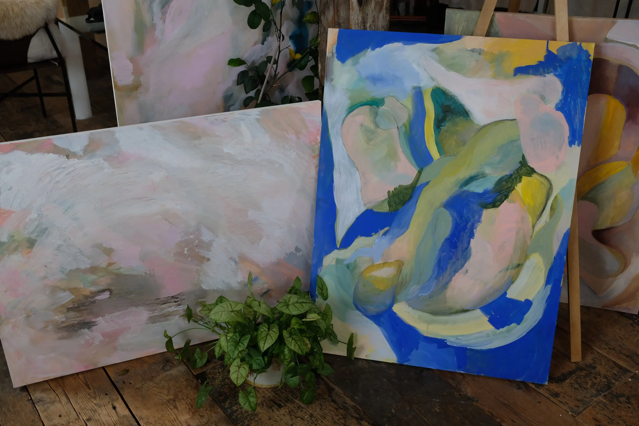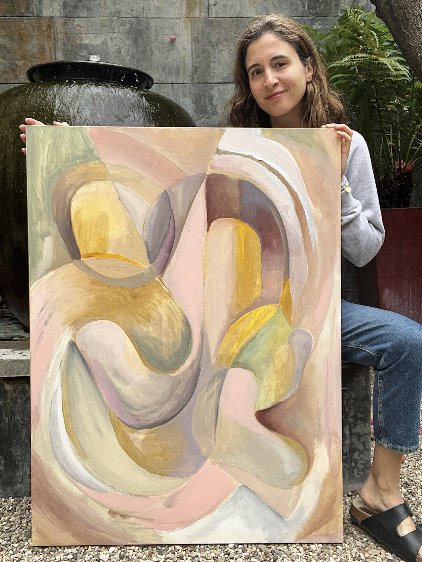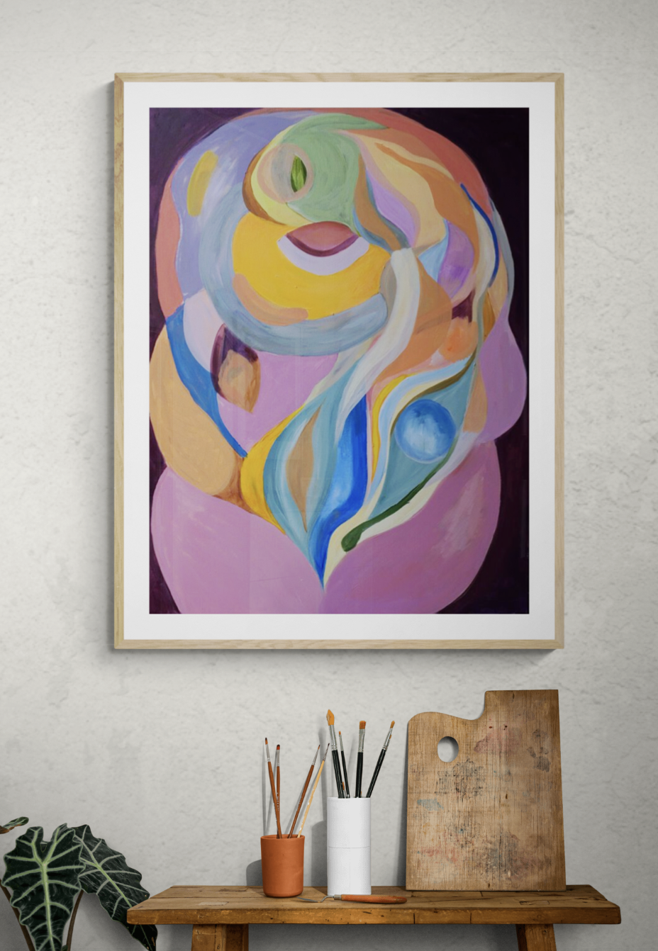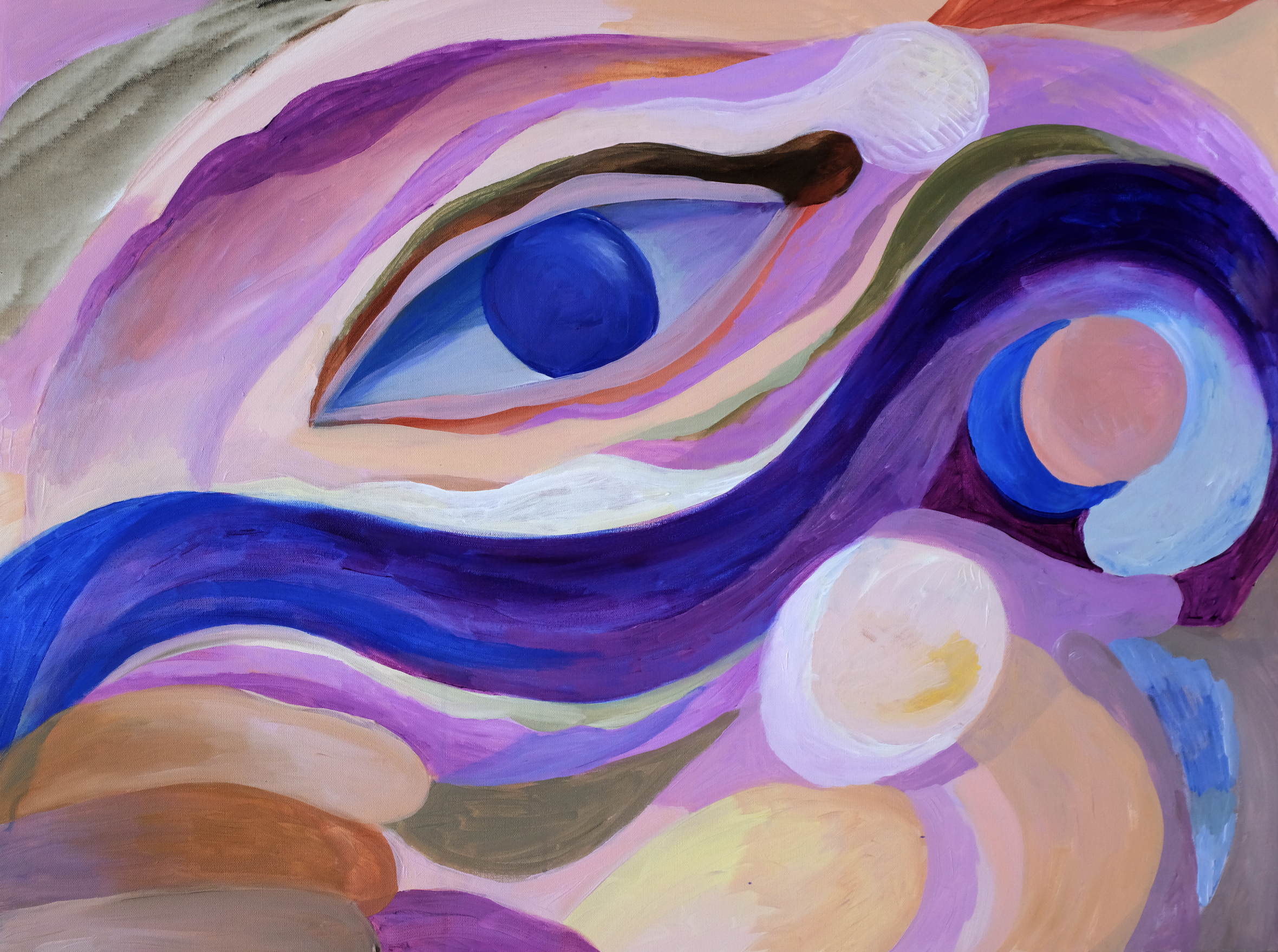 I work primarily with acrylic on canvas or linen depicting loose shapes, organic rounded forms, and an interplay of color to convey various thematic concepts reflecting my inner process of transformation. I have spent the past several years cutting away the blocks that have kept me from the expression of my truth and authenticity. The exploration of spiritual growth, psychological concepts, and inner emotional landscapes are vital to my process.